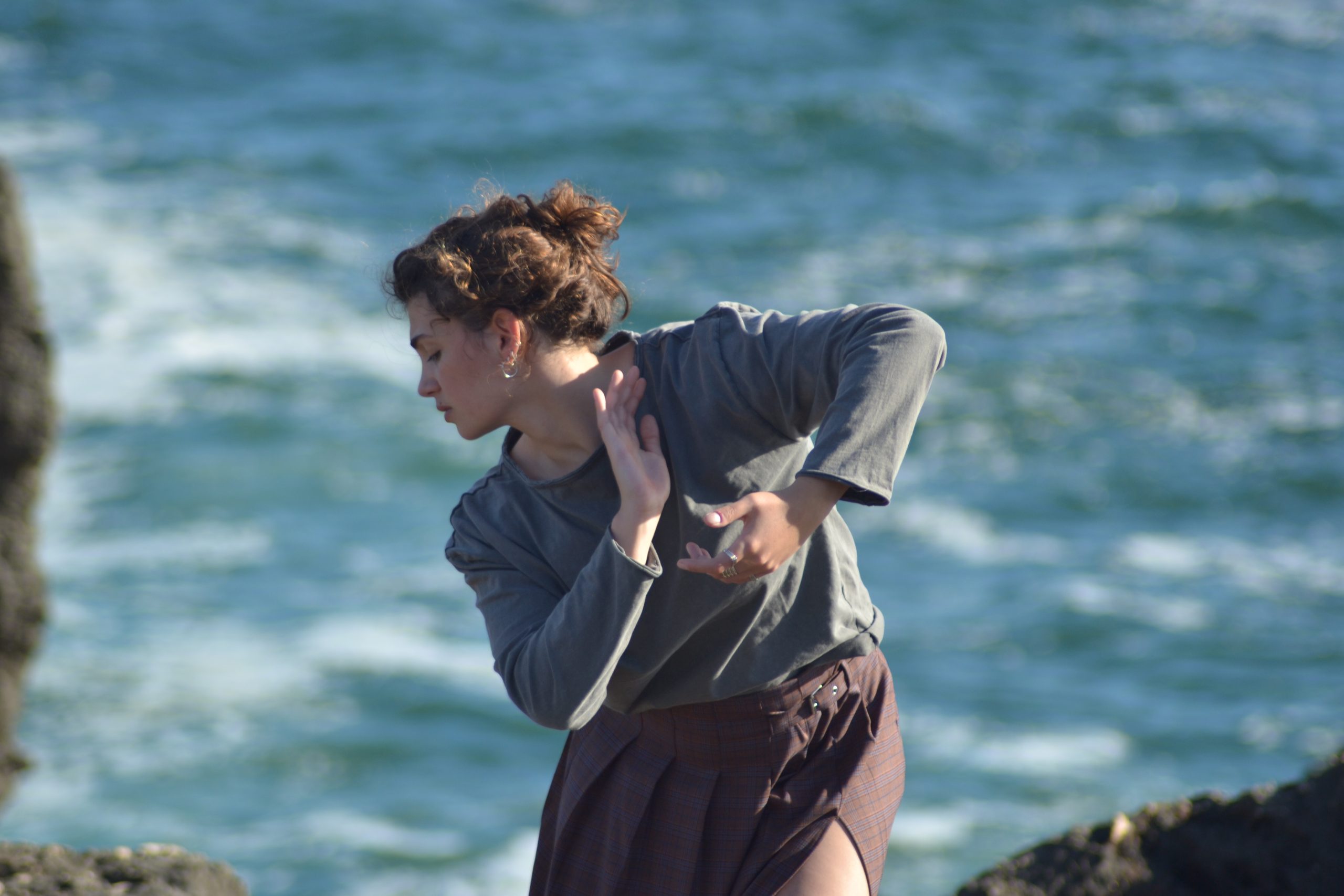 No palco, esse corpo espelha como tudo é vivido da perspetiva inaugural. A primeira mulher que nasceu com dois corações. Um monstro com a alma tripartida e as saias são aquilo que carrega de mais fútil no corpo. As feições mímicas da intérprete manifestam a encarnação de um novo deus e do velho diabo. A loucura personificada num corpo de mulher, de uma menina de areia, que corporaliza como é desmontar-se para salvar a casa que ardeu no mundo que ninguém vive. O dia do seu nascimento foi o dia da morte das coisas simples. Uma peça na tentativa de justificar uma existência marcada pela lenda da mulher que nunca pode ser, e isso diz tudo não? Sim. Esta é a rapariga que usa saias nos dias de vento, mas desta vez, sou só um esboço.